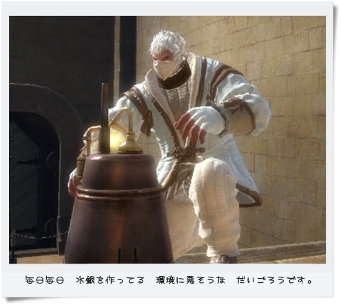 エオルゼアでは毎日錬金上げに勤しむ 10/28 白衣姿のだいごろうです。