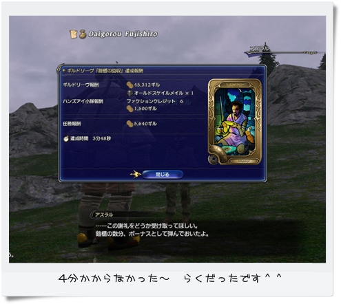 (あとで記事書くためにwiki見たら、終了個数とか提示される報酬載ってた><)